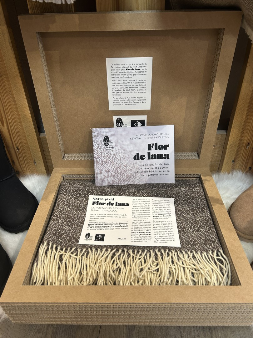 L'arrivée du plaid Flor de Lana fabriqué au Musée Départemental du Textile de Labastide Rouairoux, issu d’un projet porté par le Parc naturel régional du Haut-Languedoc et financé par la Région Occitanie, s’inscrit dans les valeurs de la boutique en mettant en avant la laine locale, une matière bien souvent dévalorisée. À Mazamet, cette initiative résonne particulièrement : la ville fut autrefois la capitale mondiale du délainage, ce savoir-faire unique qui consistait à séparer la laine de la peau. Une industrie qui fit la renommée internationale du bassin entre la fin du XIXᵉ siècle et les années 1960.