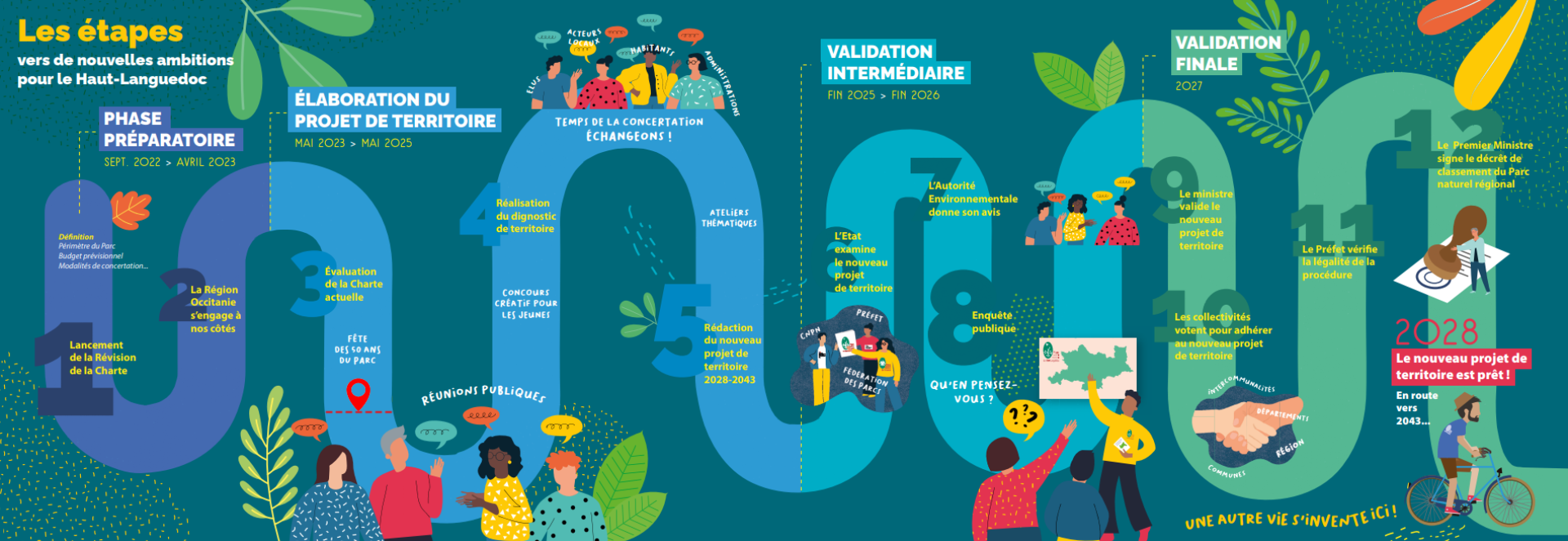 La Charte est LE document du Parc, un projet de territoire. Ecrite en concertation avec tous les acteurs concernés (habitants, associations, élus, professionnels...), elle fixe les grandes orientations que le Parc doit suivre pour le développement responsable du Haut-Languedoc.